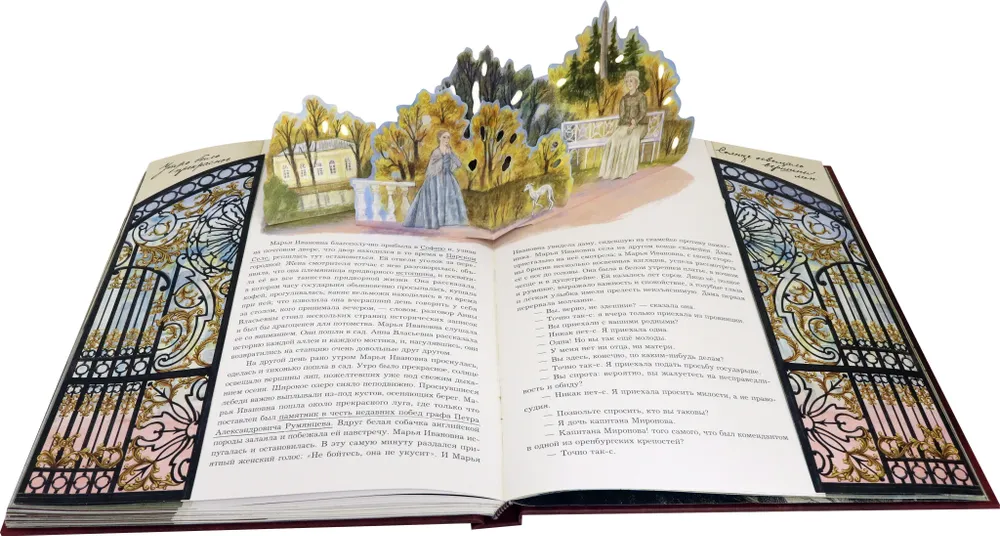 Клапаны, поп-апы и другие интерактивные элементы превратят знакомство с классическим пушкинским текстом в захватывающее путешествие. Также читателей ждут лирические портреты главных героев, офицерская шпага и разбойничий кистень, карты, планы, гравюры XVIII века и игра "Русский бунт".