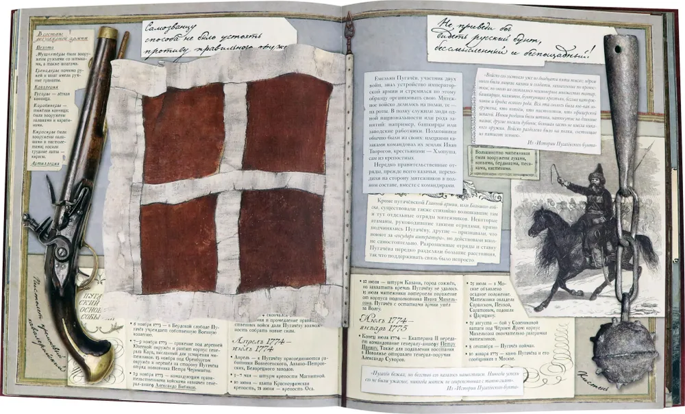 О ходе восстания и обычаях самозванца, о поединках чести и нравах степных народов расскажут подробные комментарии на полях. Уникальные архивные материалы - в том числе указы Пугачёва, офицерский патент, карта Оренбургской линии крепостей - буквально позволят увидеть время воочию.