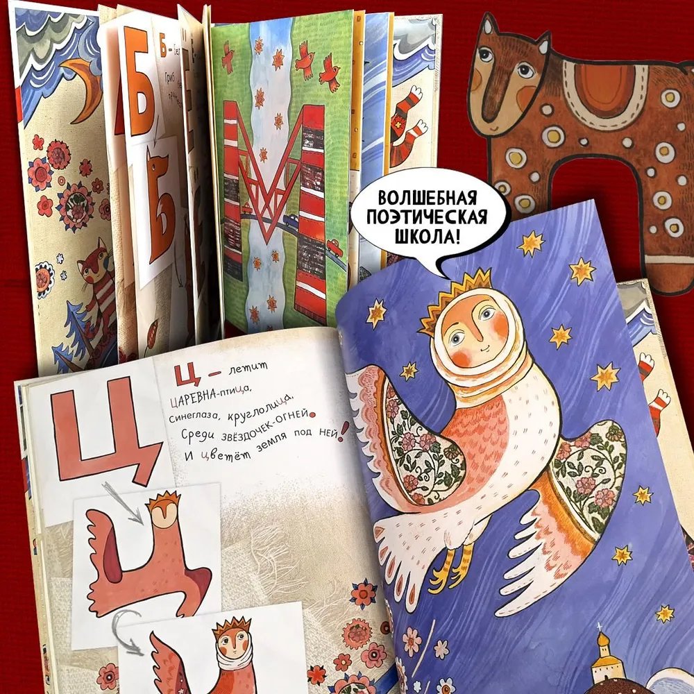 В этой веселой книжке каждая буква превращается в какой-нибудь предмет. Она может стать островом, печатным пряником, клоуном, вулканом и даже царевной-птицей!