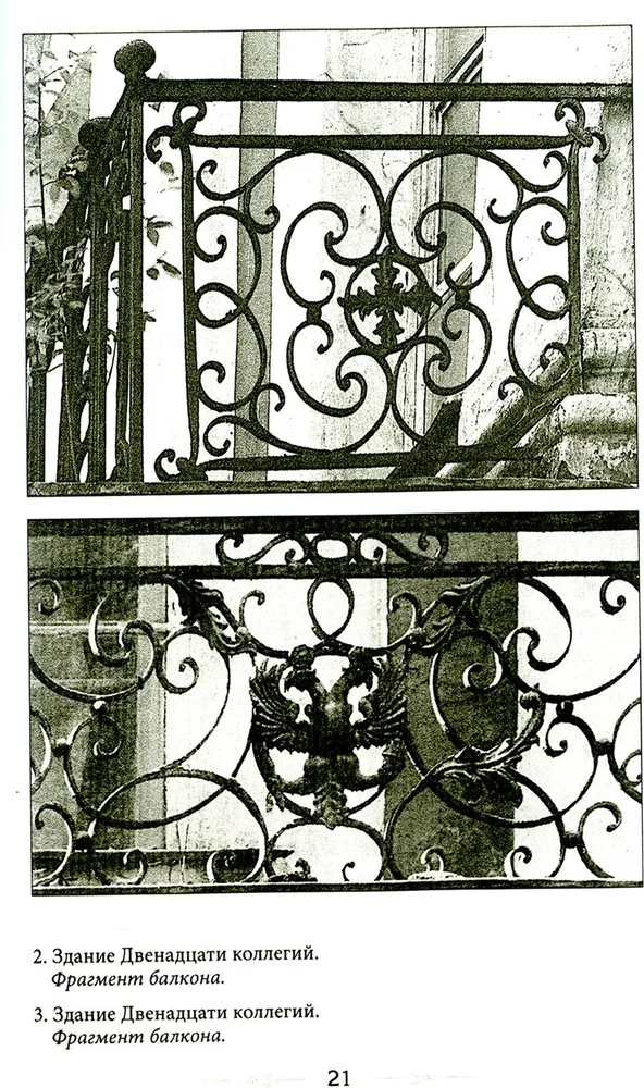 Балконы, как и архитектура здания, претерпевают стилистические изменения, преодолевая путь развития от изящно-причудливых форм барокко к строгим формам классицизма, от торжественно-помпезного ампира к насыщенным формам эклектики и изощренной необычности модерна. Вас ждет более 370 авторских иллюстраций, которые для удобства поиска информации отображены в топографическом указателе.