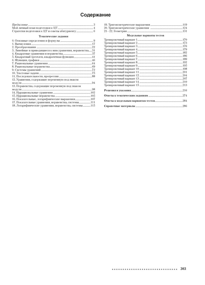 В книге приведены тематические задания, решения и указания к ним, а также тренировочные тесты и справочные материалы. Ко всем заданиям даны ответы. В начале издания представлен план индивидуальной подготовки с системным распределением заданий по 60 урокам. Пособие позволит старшеклассникам и абитуриентам самостоятельно и качественно подготовиться к централизованному экзамену и централизованному тестированию, а учителям и репетиторам — проработать с учащимися все темы школьного курса математики и проверить предусмотренные программой навыки и умения.