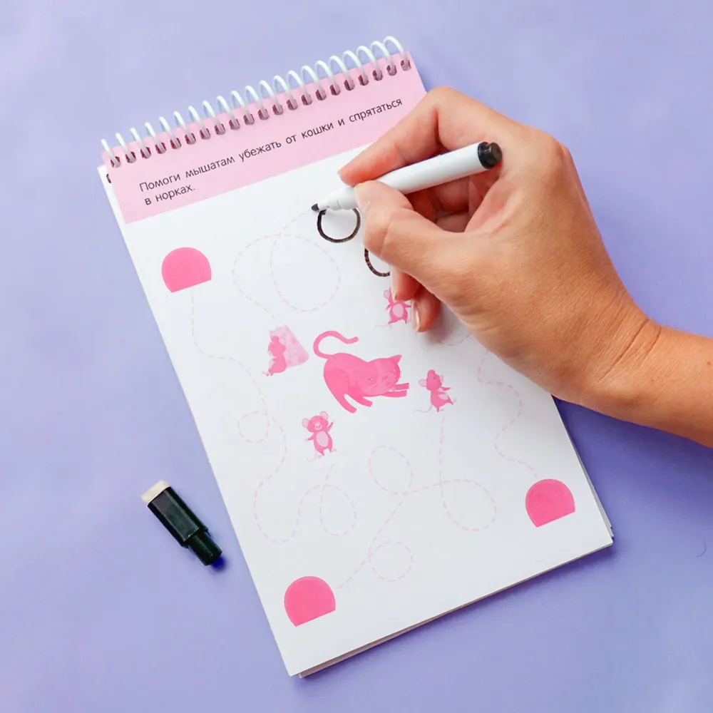 «Нескучные игры» от Malamalama — это увлекательный игровой блокнот для детей 4–5 лет. Внутри — иллюстрированные странички с простыми и интересными заданиями, которые помогают развивать мелкую моторику, логику и воображение, а также улучшать письменные навыки. В комплекте ребёнок найдёт маркер для выполнения заданий. Глянцевое покрытие страниц позволяет стирать следы маркера, используя для этого сухую ткань. Благодаря этому в блокноте можно писать и рисовать снова и снова, не боясь ошибок! Игровой блокнот удобно брать с собой и легко использовать в машине, поезде или самолёте. Поэтому «Нескучные игры» станут отличным спутником вашего малыша и не дадут ему заскучать в долгой дороге!