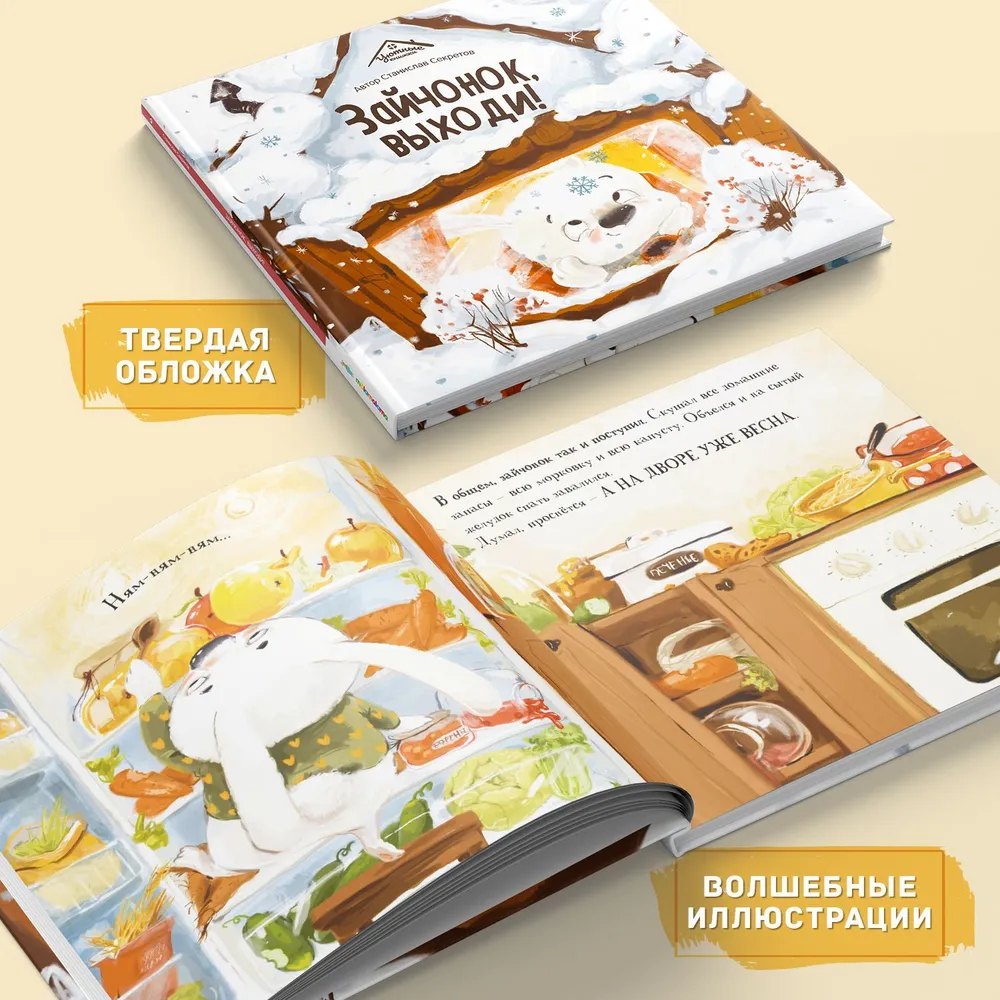 В серии «Уютные книжки» мы собрали для вас добрые сказки современных писателей, которые будет интересно читать и детям и взрослым. Сказка «Зайчонок, выходи!» детского писателя Станислава Секретова рассказывает о любопытном зайчонке, который решил, как друзья-медведи, лечь на зиму в спячку. Трогательный сюжет и красочные иллюстрации подарят вам и вашему малышу незабываемые эмоции и создадут чудесную атмосферу, стоит только открыть книжку. Проведите вечер уютно вместе с Malamalama!