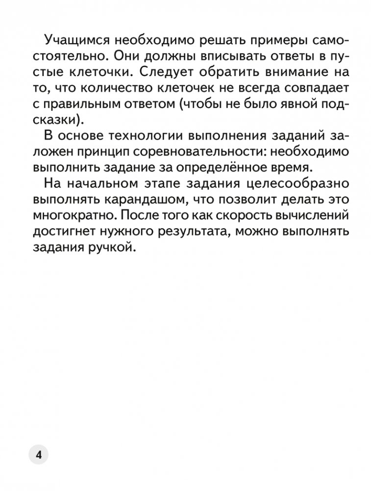 Пособие предназначено для автоматизации устного счёта в пределах 10. При выполнении заданий не только отрабатываются вычислительные навыки, но и формируется «числовая зоркость», тренируется внимание, развивается оперативная память ребёнка. Тренажёр можно использовать для работы как в классе, так и дома.