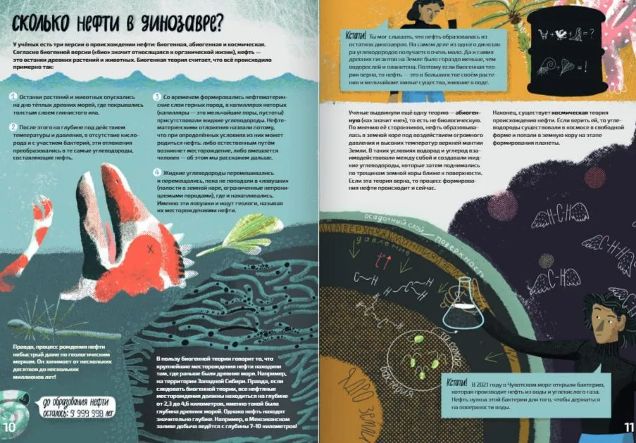 Эта книга расскажет тебе, как добывают нефть из-под земли и из-под воды, проведёт по необычным городам — добывающей платформе и нефтеперерабатывающему заводу. Покажет, как устроены бензоколонка и автомобильный двигатель. Ты узнаешь, почему летают самолёт и ракета, чем питаются котельная и корабль и для чего на заводе по производству моторных масел нужны свинки. Поймёшь, какие опасности несёт добыча нефти для здоровья нашей планеты и как можно их избежать.