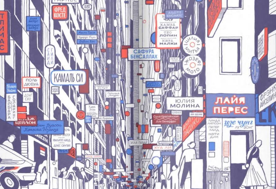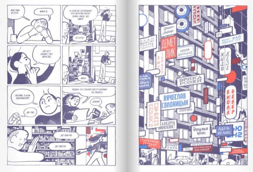 В выдуманной вселенной этого графического романа главное правило звучит безжалостно и просто: если тебя забыли, значит, ты умер. Только если человека помнят, он может существовать. Куда бы ни упал ваш взгляд, вы увидите тысячи персонажей, умоляющих о секунде вашего внимания, — их имена отображаются на многочисленных экранах.