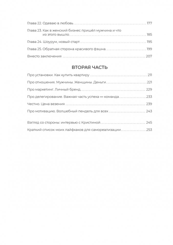 Эта книга о том, как девочке добиться успеха без связей, денег и поддержки. Марта Фролова – предприниматель, дизайнер, известный блогер и автор психологического курса "Роман с собой" рассказывает, как можно даже в декрете с двумя детьми открыть и развить свой бизнес.