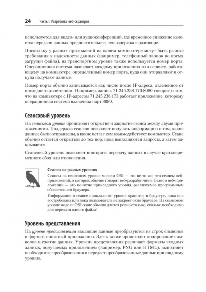 В части I основное внимание уделено механике веб-скрапинга: как с помощью Python отправлять запросы веб-серверам, обрабатывать ответы и автоматизировать взаимодействие с сайтами. В части II исследуются более конкретные инструменты и приложения, которые пригодятся при любом сценарии веб-скрапинга.