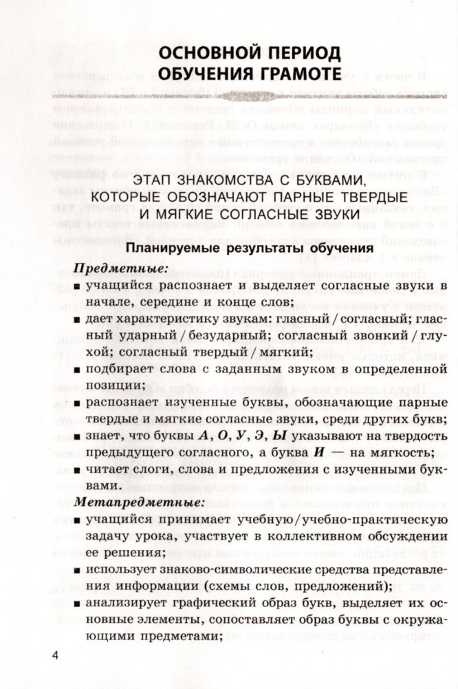 Во второй части учебно-методического пособия представлена система работы учителя в основной период обучения грамоте при изучении букв З-Щ и в заключительный период. Раскрыта специфика использования в образовательном процессе основных компонентов учебно-методического комплекса «Обучение грамоте», включающего букварь, спутник букваря, дидактической наглядный материал, пособия по внеклассному чтению. Для каждого этапа обучения грамоте определены планируемые результаты обучения: предметные, межпредметные и личностные.