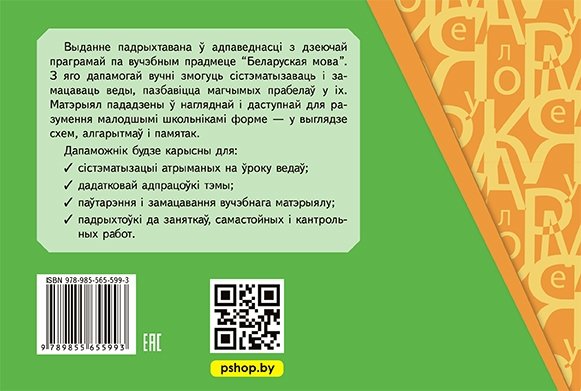 Дапаможнік утрымлівае алгарытмы і схемы, якія адлюстроўваюць асноўныя звесткі па арфаграфіі беларускай мовы. Матэрыял выкладзены ў даступнай форме, кожнае правіла суправаджаецца прыкладамі.