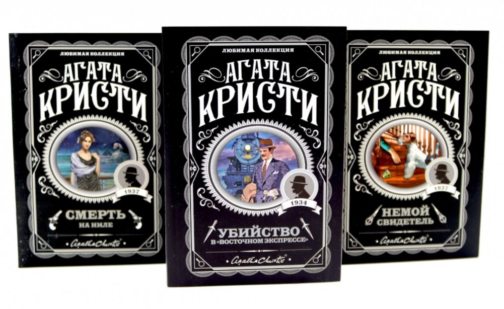 Комплект состоит из трех книг Агаты Кристи: «Убийство в восточном экспрессе», «Немой свидетель» и «Смерть на Ниле».