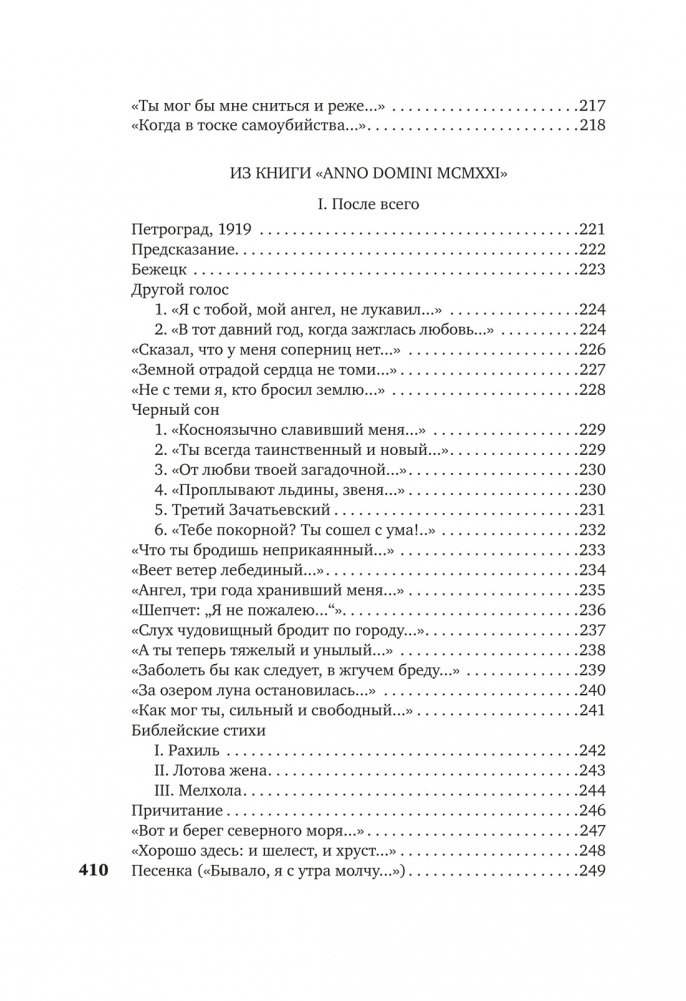 В настоящем издании собраны стихотворения из опубликованных до 1940 года книг «Вечер», «Четки», «Белая Стая», «Подорожник», «Аnnо Domini», «Тростник», а также не входившие в книги стихотворения этого периода. Тексты сверены по автографам, хранящимся в государственных архивах и частных собраниях, а также по первым публикациям в периодической печати. Сохранены особенности авторской орфографии, пунктуация подлинников, соблюдается по возможности вид записи произведений. Том снабжен предисловием и примечаниями, подготовленными Н. И. Крайневой.