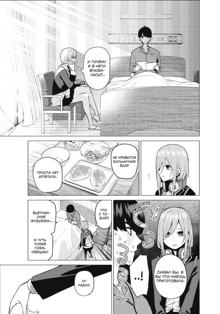 С пятерняшками не соскучишься: что ни день, то новые горести и радости. Нино и Ицуки серьёзно ссорятся и обе уходят из дома. Нино селится в отеле, а Ицуки у Футаро. Футаро пытается их помирить и заодно рассказывает Нино про таинственную девочку из своего прошлого, после встречи с которой он стал совсем другим человеком...