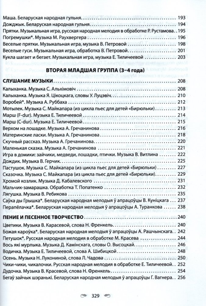 Пособие включает музыкальный репертуар, рекомендуемый учебной программой дошкольного образования по образовательной области "Музыкальное искусство" (слушание музыки, пение, пение и песенное творчество, музыкально-ритмические движения, музыкально-ритмические движения и танцевальное творчество, элементарное музицирование, элементарное музицирование и инструментальное творчество) для воспитанников от 2-х до 4-х лет.