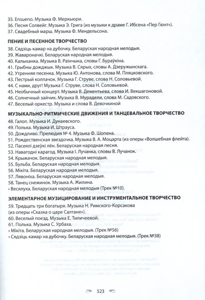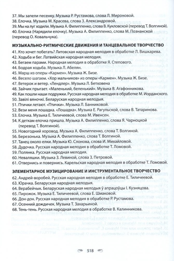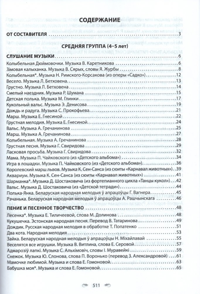 Пособие включает музыкальный репертуар, рекомендуемый учебной программой дошкольного образования по образовательной области "Музыкальное искусство" (слушание музыки, пение, пение и песенное творчество, музыкально-ритмические движения и танцевальное творчество, элементарное музицирование и инструментальное творчество) для воспитанников от 4-х до 7-ми лет.