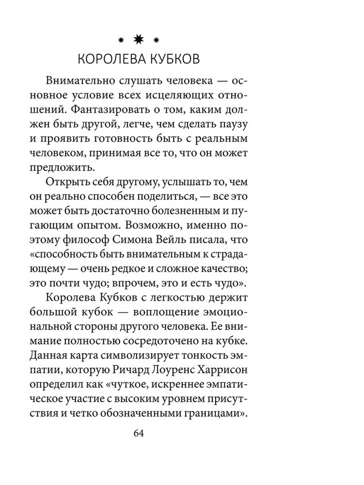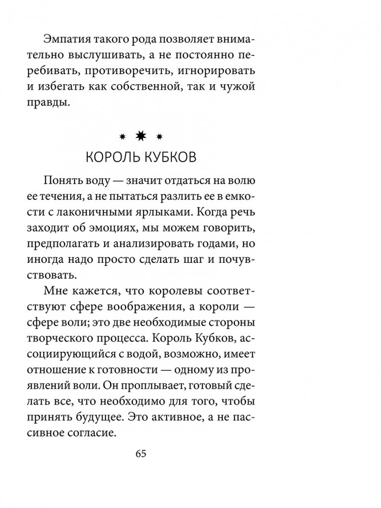 По сути, это новый способ работы с традиционными образами классических карт Таро через обращение к психологии, бихевиоризму, эзотерике, мифам и легендам. Такая система толкования являет собой холистическое восприятие человеческого опыта, а также предоставляет читателю возможность изучить замысловатые узоры собственного внутреннего мира и познать тайны, сокрытые глубоко внутри.