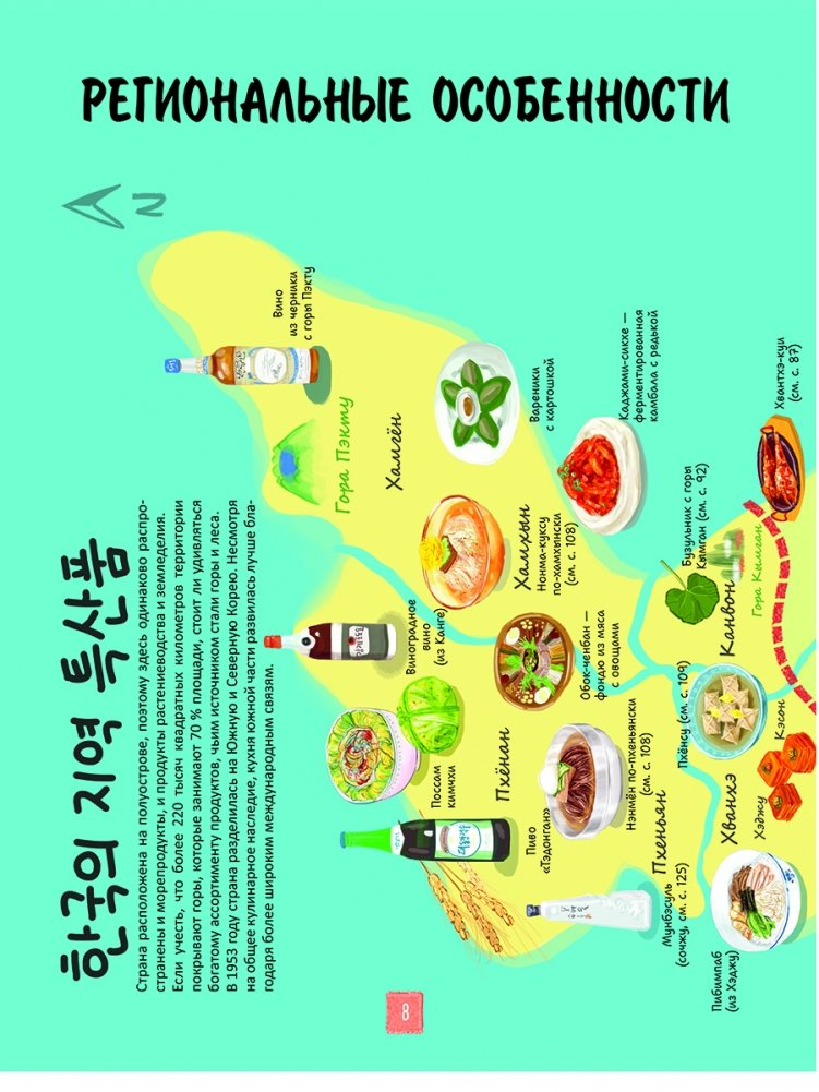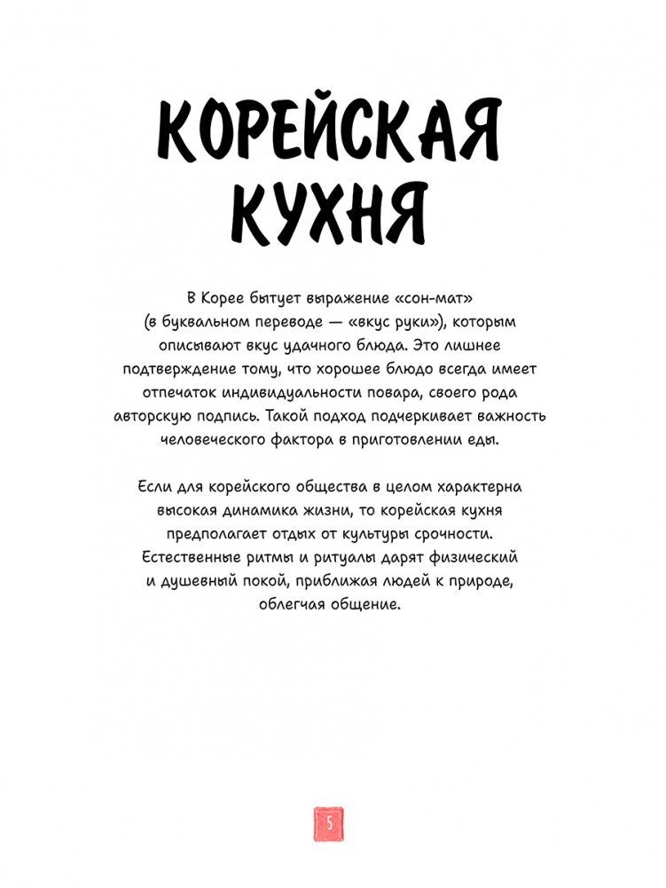 Рецепты, увлекательные истории, географические карты, посуда, кухонная утварь, ингредиенты… Вы получите ответы на все свои вопросы! Как выглядит повседневная корейская еда? Каковы правила поведения за столом? Почему корейцы так любят ферментированные продукты? Как украсить пибимпаб? В чем секрет жареной курицы по-корейски? Что подают к столу на семейных праздниках? Какие блюда приносят удачу? Чем может порадовать уличная еда? Какие десерты самые вкусные?