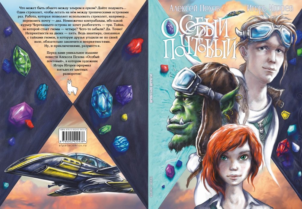 Что может быть общего между эльфом и орком? Дайте подумать… Один стреколет, чтобы летать на нём между тропическими островами – раз. Работа, которая позволяет использовать стреколет, например... перевозить почту – два. Немножечко контрабанды, ибо какой курьер Черепашьего острова не хочет разбогатеть – три. Тайна, за которой стоят гномы – четыре? Чего-то забыли? Да. Точно! Неприятности на двоих – пять. Ведь авантюра, связанная с тайнами гномов, в которую друзья угодили не по своей воле, обязательно закончится неприятностями. Ну, и приключениями, разумеется. Перед вами уникальное издание повести Алексея Пехова «Особый почтовый», в котором художник Игорь Игорев оформил пятьдесят цветных разворотов!