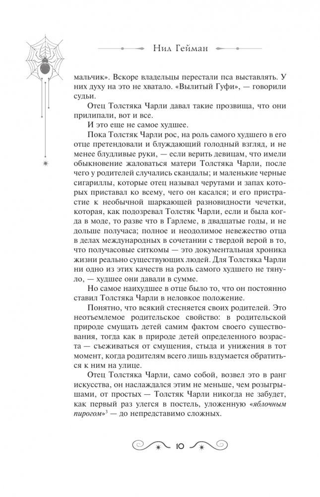 Толстяк Чарли Нанси, скромный, лишенный амбиций житель Лондона, ведет приготовления к свадьбе, когда узнает о смерти своего горе-папаши. Вечно ставивший Толстяка Чарли в неловкое положение, тот и умер словно в насмешку: флиртуя с девушками в караоке-баре. С этого момента жизнь Толстяка Чарли начинает рушиться. Чтобы вновь обрести себя, ему придется обратиться за помощью к ведьмам, отправиться на край света, потерять невесту и… спеть?