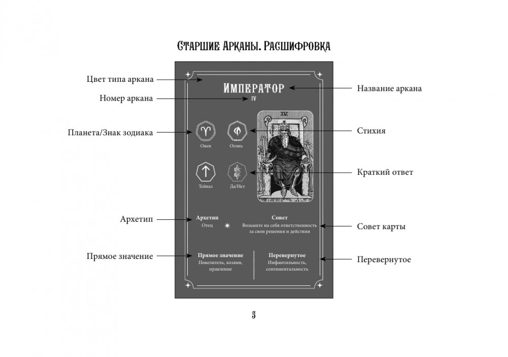 Если вы хотели обучиться гаданию на Таро, но вам сложно запоминать толкования, если вы не понимаете структуру арканов или не можете прочесть знаки — эта обучающая колода для вас. "Таро Уэйта. Эффективное обучение" — обучающее Таро нового поколения. На картах начерчены толкования, руны и астрологические знаки, которые помогут запомнить значения карт, увидеть на них больше информации и трактовать выпавшие карты точнее. Чтобы начать практиковать Таро, вам нужен только этот комплект: в книге 50 раскладов, каждый из которых вы можете разложить и сразу же трактовать. Доверяйте своим толкованиям с первого предсказания! В комплекте: колода из 78 карт с иллюстрациями Таро Уэйта с толкованиями, рунами и астрознаками на каждой карте и подробная инструкция по работе с колодой, включая дополнительные значения и 50 основных раскладов, все упаковано в подарочную коробку с картонным фиксатором (ложементом).