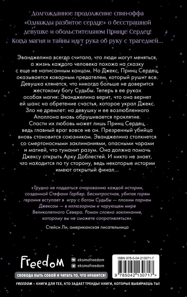 Эванджелина всегда считала, что люди могут меняться, а жизнь каждого человека похожа на сказку с еще не написанным концом. Но Джекс, Принц Сердец, оказывается коварным предателем, который рушит все. Девушка клянется, что никогда больше не доверится жестокому богу Судьбы. Теперь в ее руках особая магия: Эванджелина верит, что она вернет ей шанс на обретение счастья, которое украл Джекс.