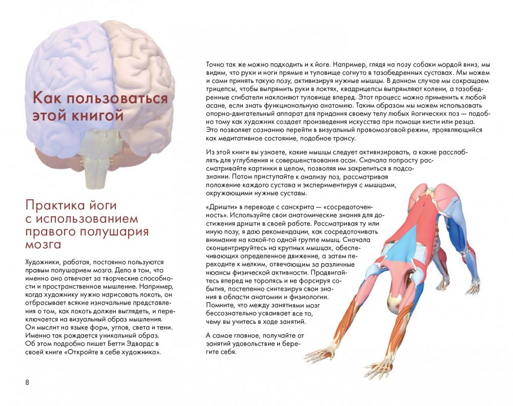 С помощью полноцветных трехмерных иллюстраций опорно-двигательного аппарата человека доктор Рэй Лонг раскрывает анатомическую и физиологическую подоплеку 55 фундаментальных поз йоги. Автор подробно и наглядно описывает конкретные группы мышц, которые задействуются при выполнении той или иной асаны, что позволит читателю получать от каждой позы максимум функциональной пользы. Разобравшись в работе мышц, вы сможете более активно и, главное, правильно вовлекать их в свою практику йоги. Эта книга станет незаменимым руководством для тех, кто хочет привести в полную гармонию разум и тело во время занятий йогой.
