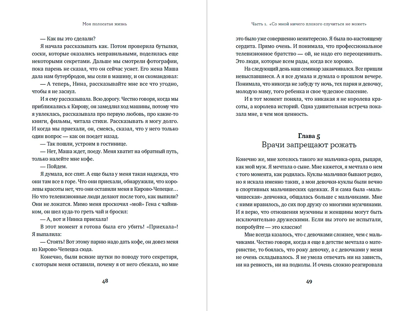 Моя жизнь — полосатая, как у всех. И в ней случалось разное. В этой книге я собрала свои истории о любимых людях, о подарках судьбы, о неудачах, с которыми трудно было справиться. Но если подумать, оказывается, что даже из неудач можно сделать полезные выводы и идти дальше. Я расскажу истории о себе и буду надеяться, что каждому из вас тоже найдется что вспомнить: про радостное и грустное, про надежду и веру, про сомнения и переживания, про самых близких и случайных знакомых. Я уверена, что в нашей жизни много света, надо просто разглядеть его. Надеюсь, что моя книга вам в этом поможет.