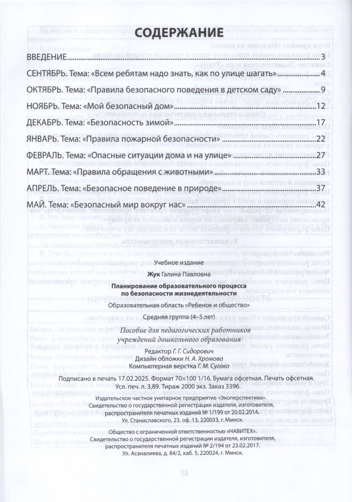 Планирование образовательного процесса по безопасности жизнедеятельности. Средняя группа 4-5 лет