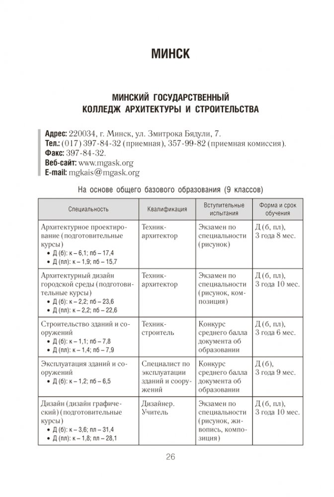 Справочник абитуриента — 2026. Учреждения среднего специального образования Республики Беларусь