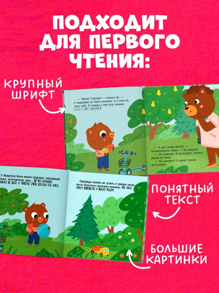 Маленький Мишутка мечтал об игрушечном грузовике и однажды нашел его в лесу. Можно взять игрушку себе, если у нее нет хозяина? Но оказалось, что у грузовика уже есть хозяин… Медвежонок учится правилам поведения — спрашивать разрешения, не брать чужое, делиться и меняться игрушками.