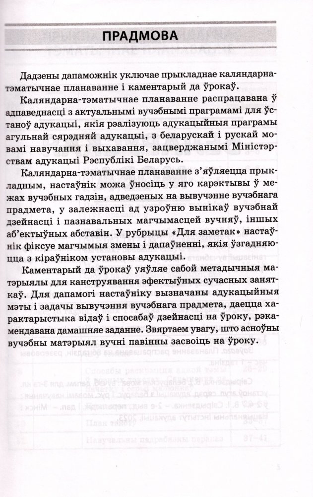 Дадзены дапаможнік уключае прыкладнае каляндарна-тэматычнае планаванне и каметарый да ўрокаў.