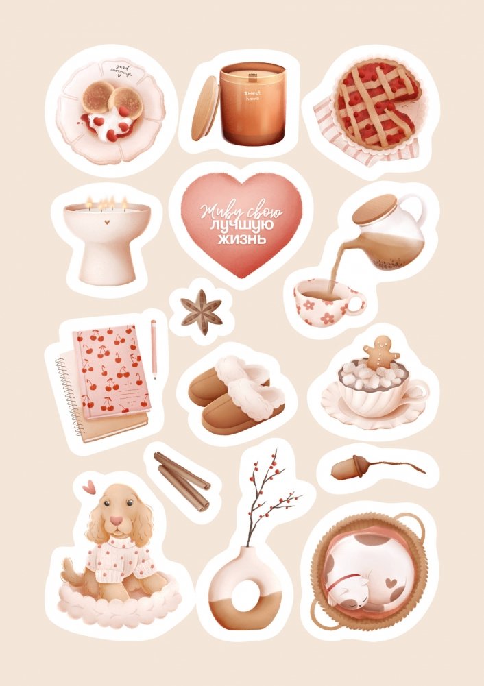Нежный набор стикеров формата А5 от Ольги Примаченко. В наборе 72 наклейки. Глянцевое покрытие. Наклейки подходят для любых поверхностей и не оставляют следов.