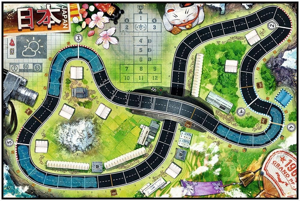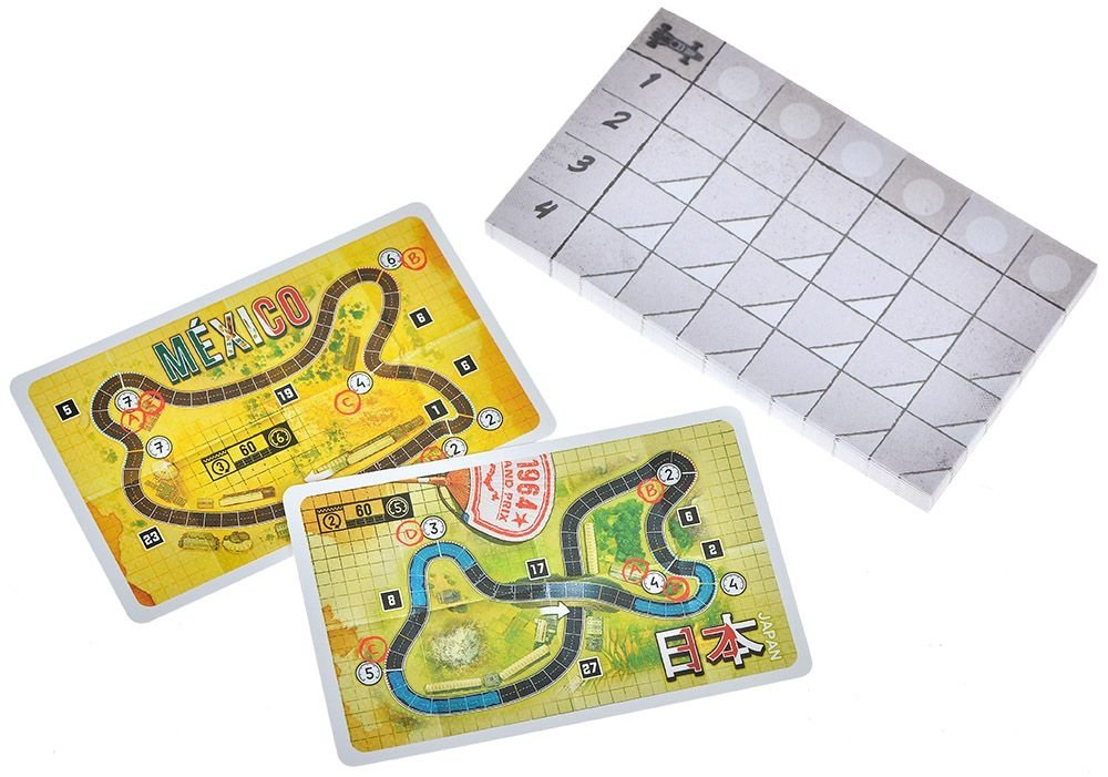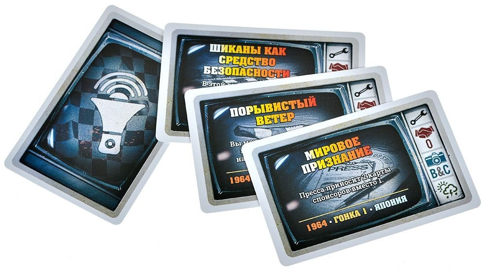 "Гонка: Ливень" – это дополнение для настольной игры "Гонка: Жара на трассе". Оно включает в себя 2 новых трека: Япония, залитая водой после проливного дождя, и Мексика с опасными S-образными поворотами. Кроме того, в это дополнение вводится чемпионат 1964 года, новые карты спонсоров и карты улучшений с воздухозаборниками, которые помогут охладить двигатель. Ну и конечно же, полный набор для ещё одного гонщика под номером 4.