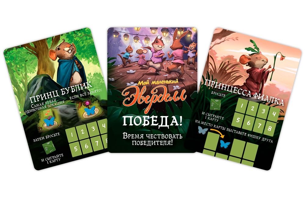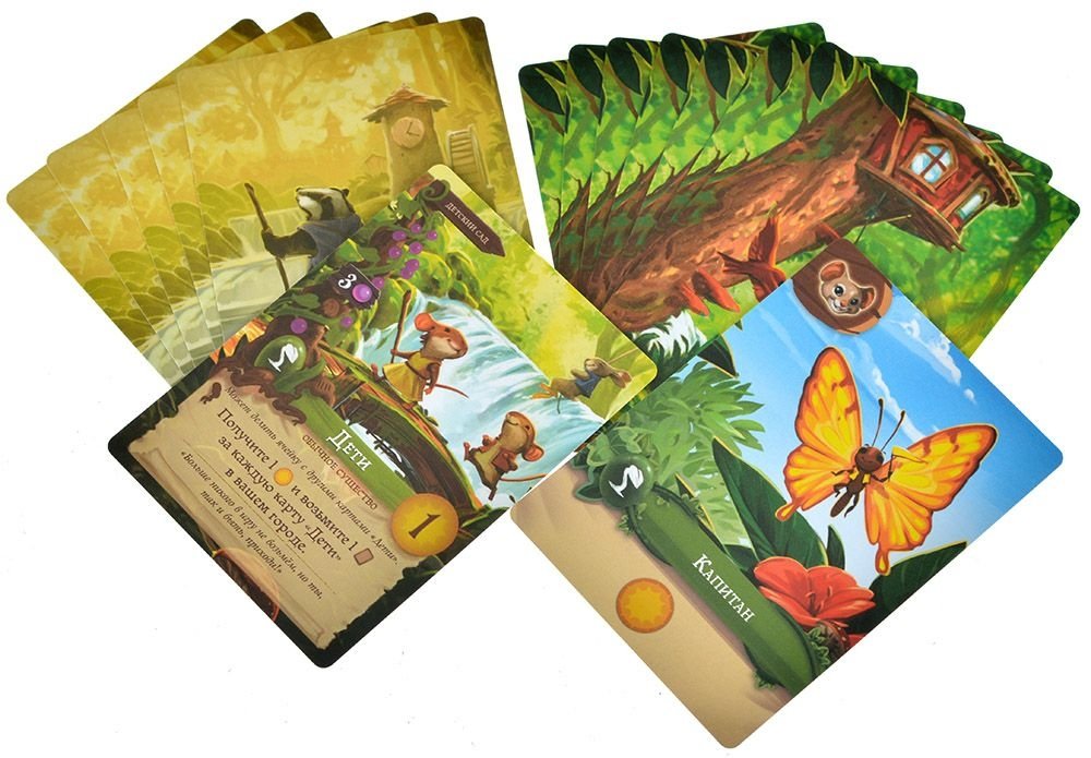 Также в составе игры бонусное расширение "Детский сад": 7 новых карт для "Эверделла" и 4 новые карты для "Моего маленького Эверделла"! А ещё... 4 ящичка для ресурсов и 36 дополнительных жетонов ресурсов!