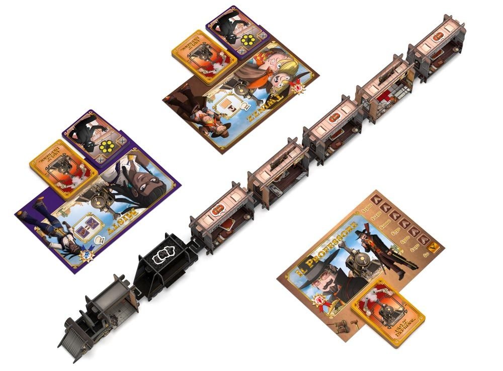 В состав дополнения Курьеры и бронепоезд входят: 1 бронированный поезд (7 вагонов); 2 жетона пулемётов; 30 карточек; 14 жетонов добычи; 10 значков команды; 1 жетон «Дикая банда»; набор компонентов для 2 новых персонажей; набор компонентов для Иль Профессоре; правила игры.
