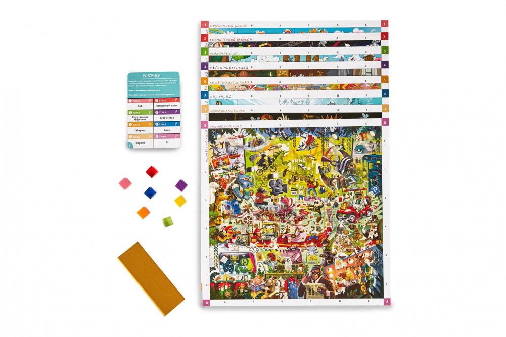 • "Улика" – объяснять ничего не нужно. Все игроки ищут загаданную деталь на скорость.
