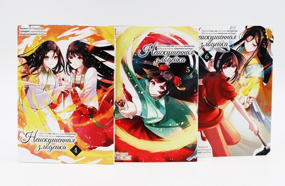 Комплект состоит из трех томов (4-6) манги Сацуки Накамура «Неискушенная злодейка».