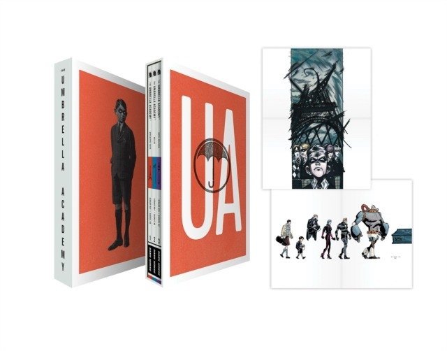 Three magnificent New York Times bestselling Umbrella Academy graphic novels are collected in one deluxe boxed set featuring an exclusive, double-sided poster! (Note: there is one box; image shows both sides) The inspiration for the the hit Netflix show!! In an inexplicable worldwide event, forty-three extraordinary children were spontaneously born by women who'd previously shown no signs of pregnancy. Millionaire inventor Reginald Hargreeves adopted seven of the children; when asked why, his only explanation was, To save the world. These seven children form The Umbrella Academy, a dysfunctional family of superheroes with bizarre powers. Nearly a decade after their first mission, the team disbands, but when Hargreeves unexpectedly dies, these disgruntled siblings reunite just in time to save the world once again. Collects Umbrella Academy: Apocalypse Suite, Umbrella Academy: Dallas, and Umbrella Academy: Hotel Oblivion. Also includes an exclusive Umbrella Academy double-sided poster.