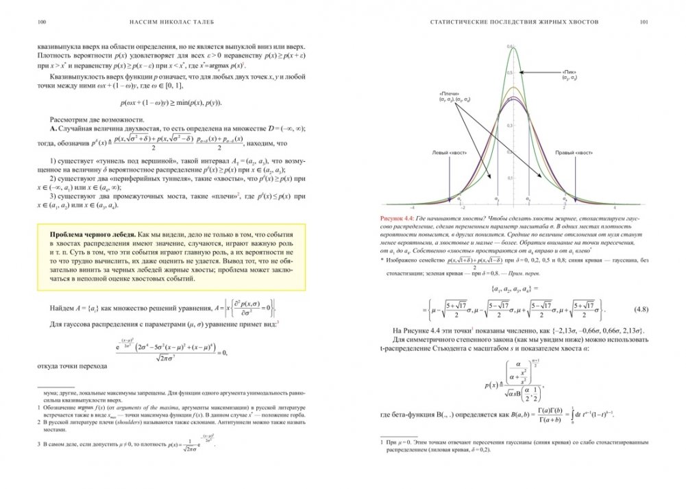 Если вы не дружите с графиками и формулами, то из этой книги почерпнете информацию только про скандалы и разоблачение горе-ученых. Если вы учили математическую статистику, эта книга поможет вам переучиться. Если вы студент или ученый, эта книга — бесценный мастер-класс. Впервые под одной обложкой собраны исследовательские статьи Талеба и его учеников, где в неповторимом талебовском стиле живо и ярко прослеживается ход мысли прикладного математика, сталкивающегося с жизненной задачей, не зная, можно ли ее решить аналитически, с чего начать, за что хвататься, — но настроенного пустить в ход, если понадобится, весь арсенал классической и современной математики и всю мощь компьютеров.