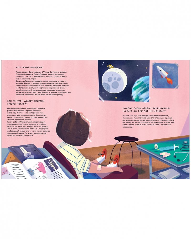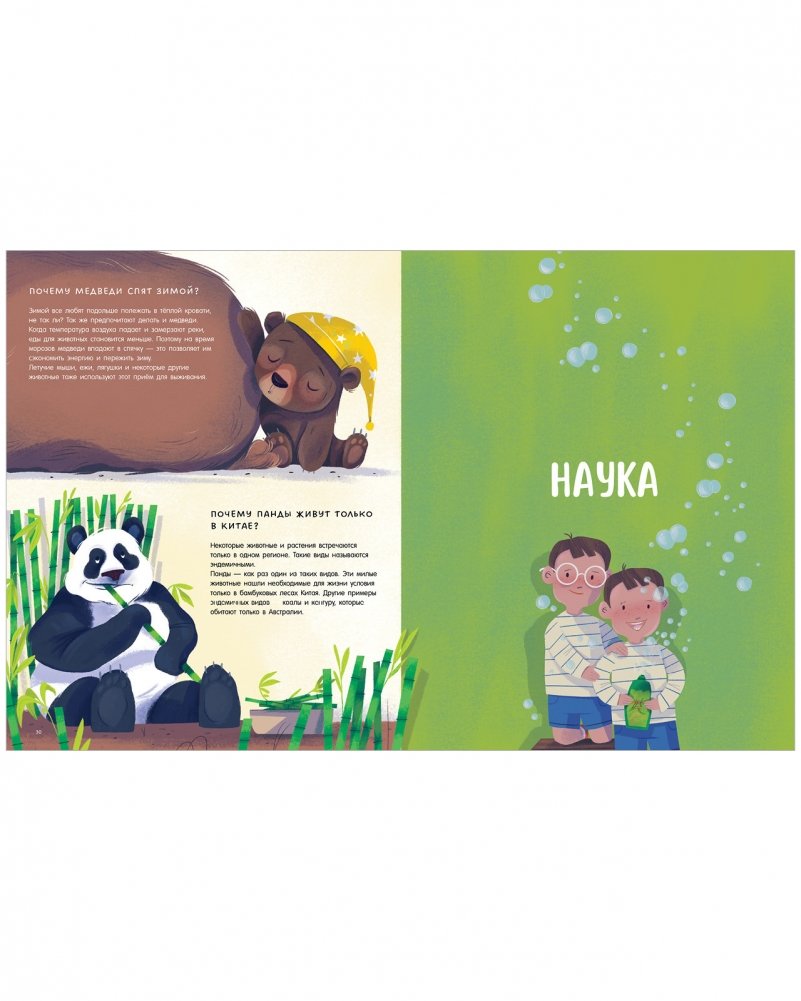 В книге есть ответы на вопросы любопытных исследователей мира по самым главным темам: наука, животные, космос, тело человека. Что такое космический мусор? Может ли пойти дождь из лягушек? Почему птицы летают? Почему фламинго розовые? У кошек 9 жизней? Почему мыльные пузыри круглые? На эти и другие вопросы вы сможете ответить детям, если откроете эту удивительную энциклопедию.