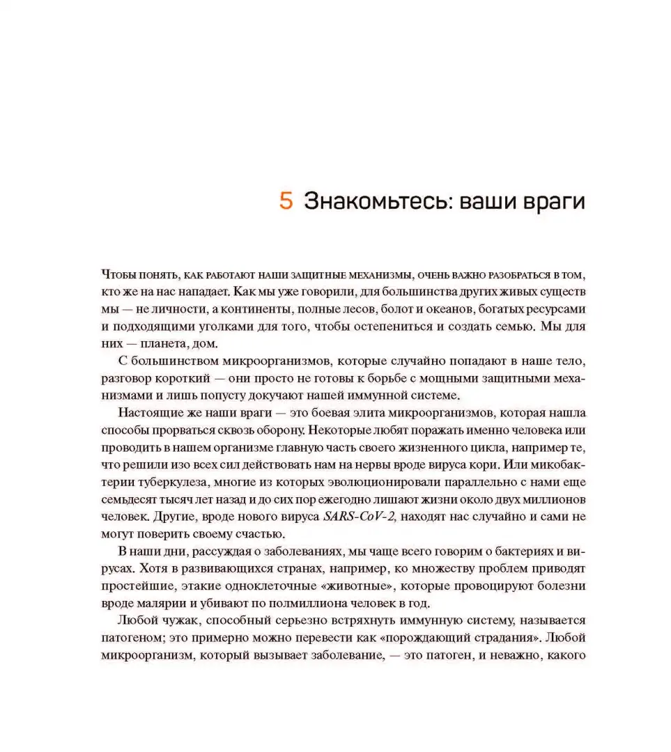 Ответ на этот вопрос можно найти в учебнике по иммунологии. Однако, начав читать, вы, скорее всего, быстро закроете его и положите на полку, позабыв как страшный сон. В этой прекрасно иллюстрированной книге автор постарался сделать сложную информацию доступной и увлекательной. После прочтения вы навряд ли станете экспертом в иммунологии, но зато точно будете знать об иммунитете намного больше.