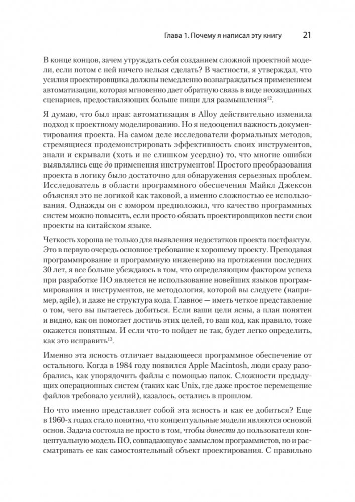 Познакомьтесь с нестандартным подходом к проектированию ПО, который построен на концепциях. Дэниел Джексон доказывает, что любую программную систему следует рассматривать как набор взаимодействующих концепций, которые разбивают функциональность на управляемые части. Такой подход позволяет создавать ПО, которое не только эффективно работает, но и приносит удовольствие пользователям.