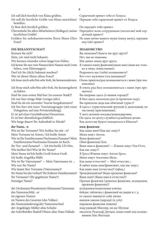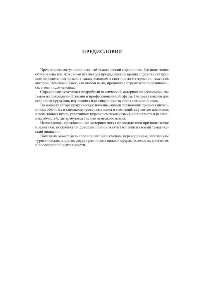 Справочник представляет собой подробный подбор лексического материала по многим темам как из повседневной жизни, так и в области устной и письменной речи. Он предназначен для широкого круга лиц, изучающих или совершенствующих немецкий язык.