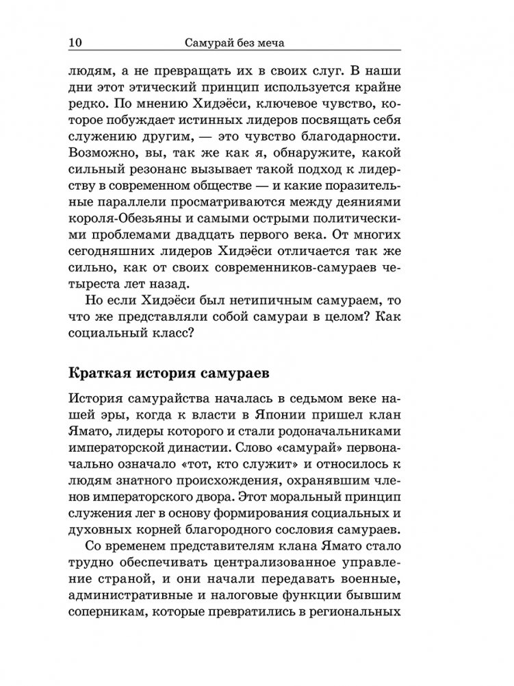 Секреты лидерства, которые использовал легендарный японский полководец Тоётоми Хидэёси, чтобы достичь вершины славы, неподвластны времени. Книга «Самурай без меча» достойна занять свое место в числе таких классических источников восточной мудрости, как «Трактат о военном искусстве» Сунь-цзы и «Книга пяти колец» Миямото Мусаси. Эти универсальные принципы, стратегии и тактики помогут каждому, кто стремится достичь успеха в бизнесе и в жизни сегодня.
