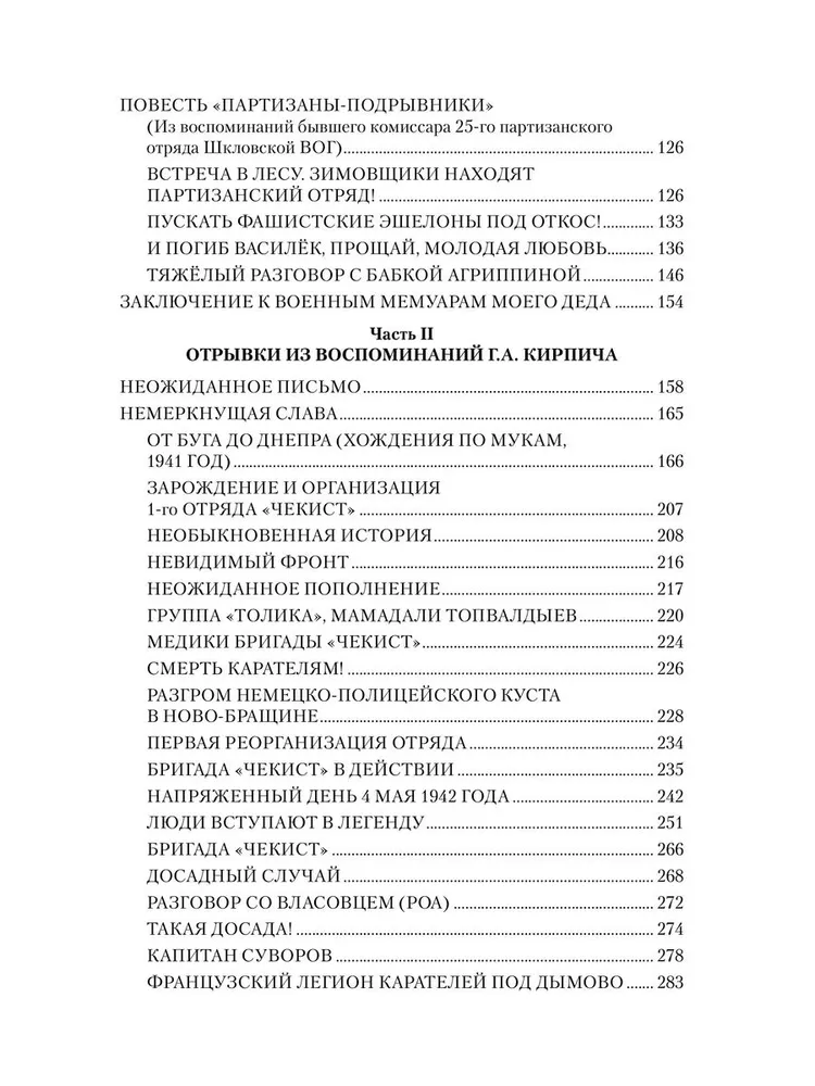 Книга представляет собой сборник воспоминаний участников партизанского движения в Белоруссии в годы Великой Отечественной войны: комиссара 25‑го отряда бригады «Чекист» М.П. Пичугина и ее командира Г.А. Кирпича, которые во многом продолжают и дополняют друг друга. Честно и без прикрас рассказывают они суровую правду о войне и людях, ежеминутно рисковавших своей жизнью во имя победы. Составитель и научный редактор И.Н. Пичугина.