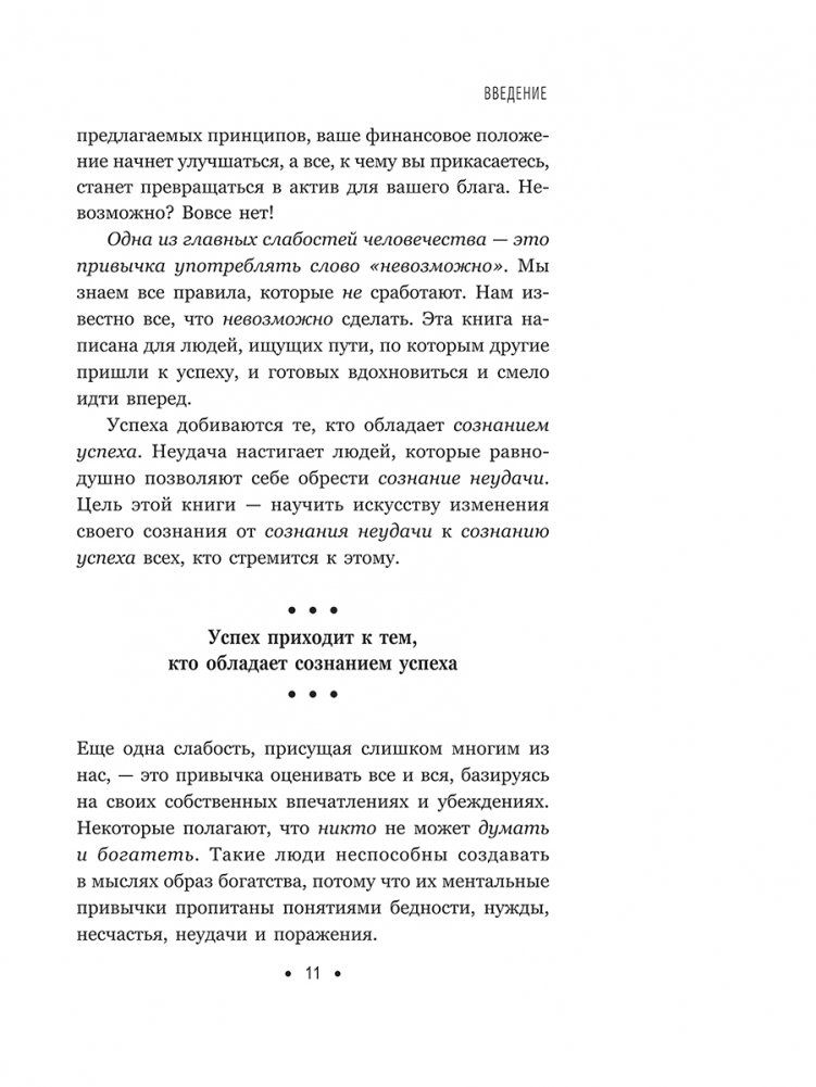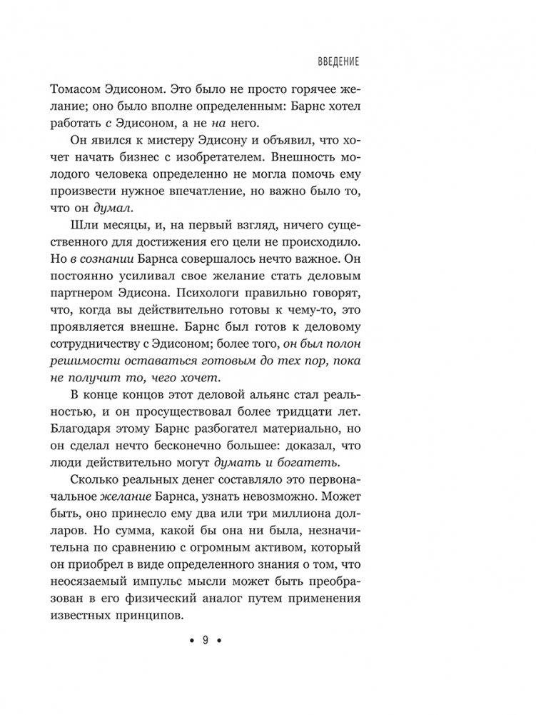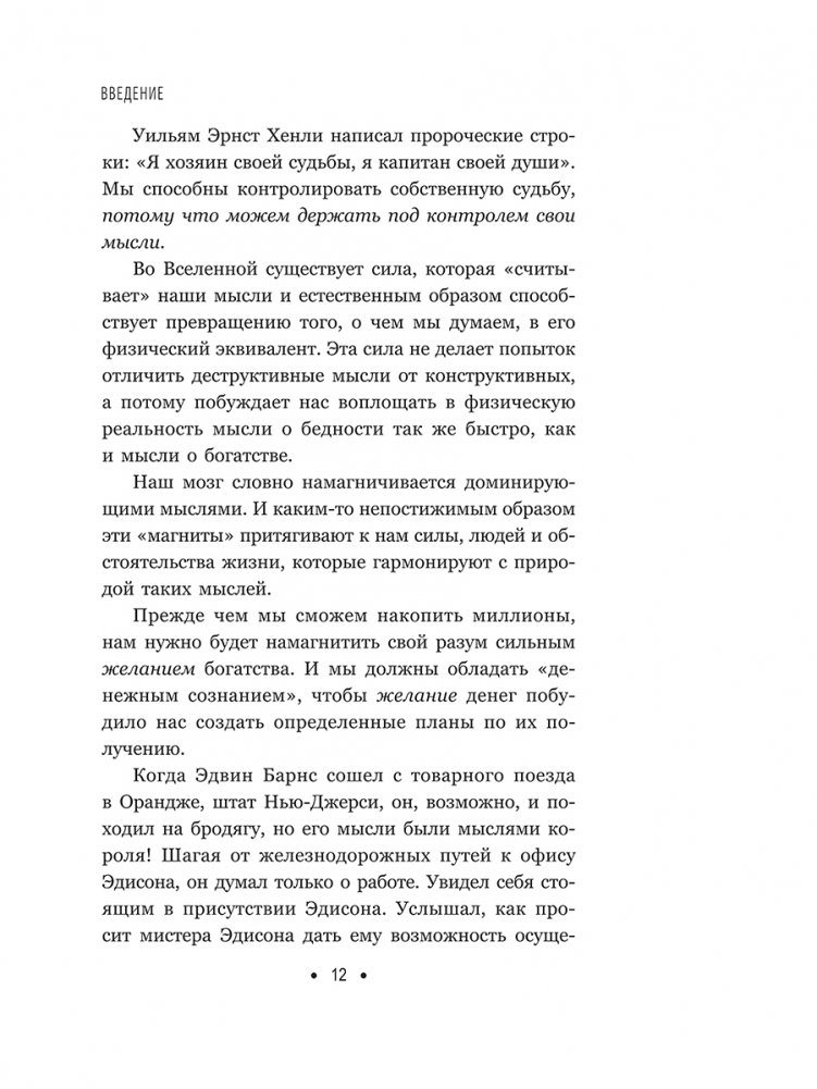 В этом высказывании выведена формула успеха — настолько простая, что ее может применить любой, и в то же время настолько сложная, что лишь единицы из нас когда-либо полностью ее реализуют. Именно на ней построена философия успеха, объясняющая, каким образом человеческие желания могут воплотиться в материальную реальность. Именно благодаря ей самые богатые люди в мире — богатые в самых разных смыслах: деньгами, отношениями, властью, душевным спокойствием и социальным статусом, — выстраивали и поддерживали свое благосостояние. Именно она лежит в основе науки успеха — философии достижений, которая помогла покончить с Великой депрессией и с тех пор создала больше миллионеров, культовых личностей и лидеров мнений, чем любая другая.