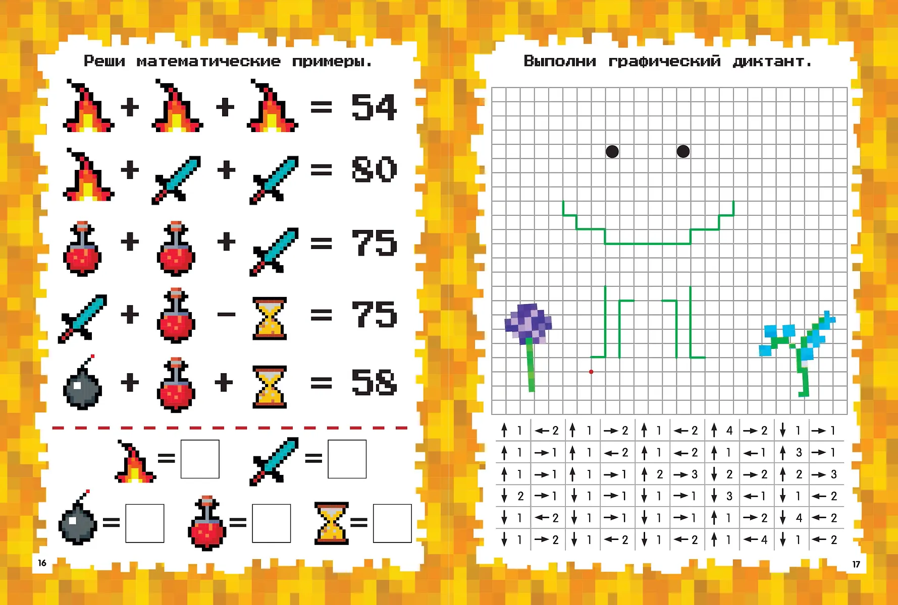 Книга "Майнкрафт. Головоломки и раскраски" — лучший способ отвлечься от гаджетов. Книга большого формата, имеет 48 цветных страниц, оформлена в стиле популярной компьютерной игры. Бонус — 3D-наклейки, с помощью которых можно создать трёхмерные рисунки и картинки-мозаики. Ребёнка ждут занимательные шифровки, логические задачки, судоку, кроссворды, лабиринты, рисунки по точкам, разные виды раскрасок, задания на внимание, память, мышление и, конечно, пиксельные картинки. Для дошкольного и младшего школьного возраста.