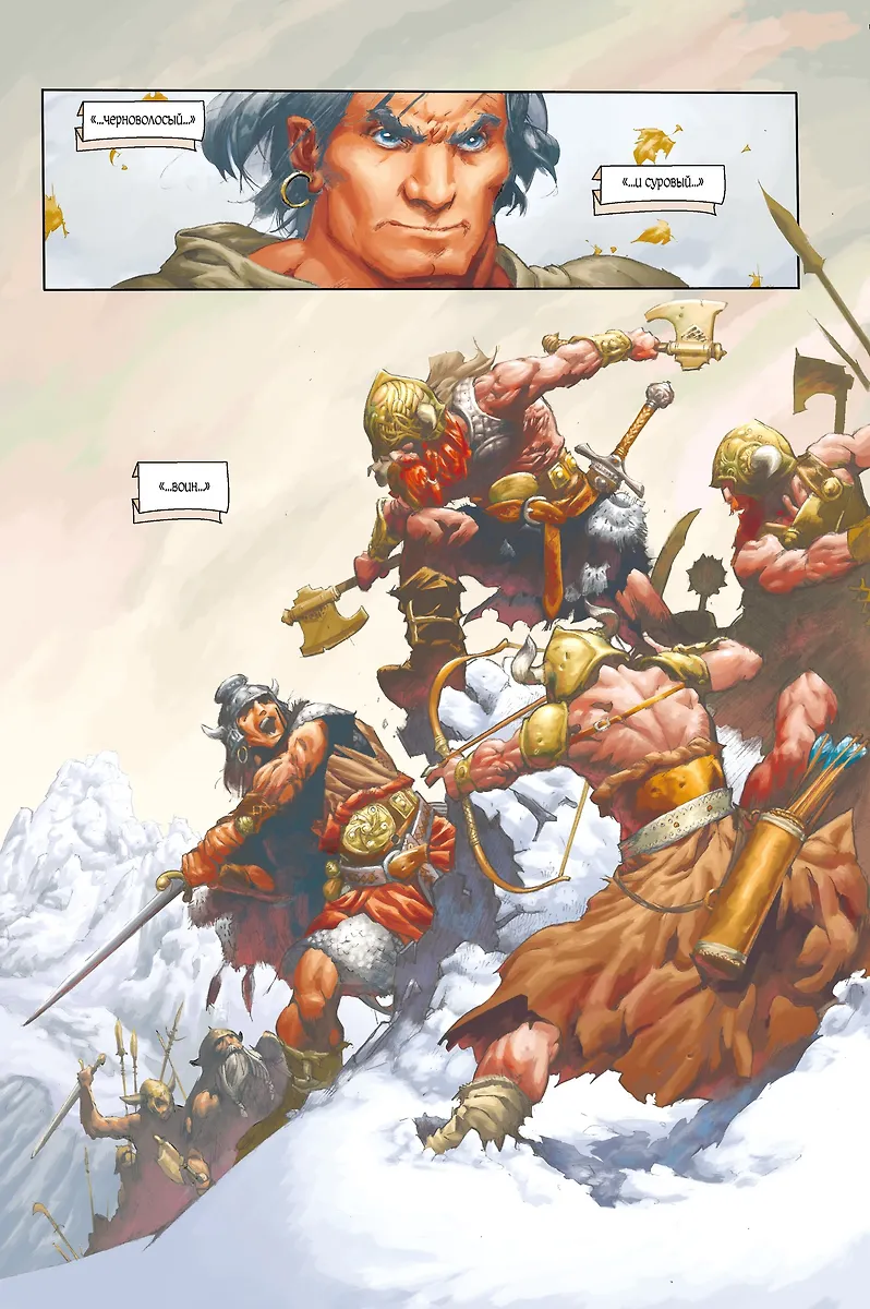 Конан возвращается! Встречайте: культовая комикс-сага о варваре-киммерийце от сценариста Курта Бьюсика и художника Кэри Норда, вобравшая лучшие черты чеканной прозы Роберта И. Говарда! Отправляйтесь в эпическое странствие по овеянным тайнами блистающим царствам суровой Хайборийской эры и станьте свидетелем рождения легенды!