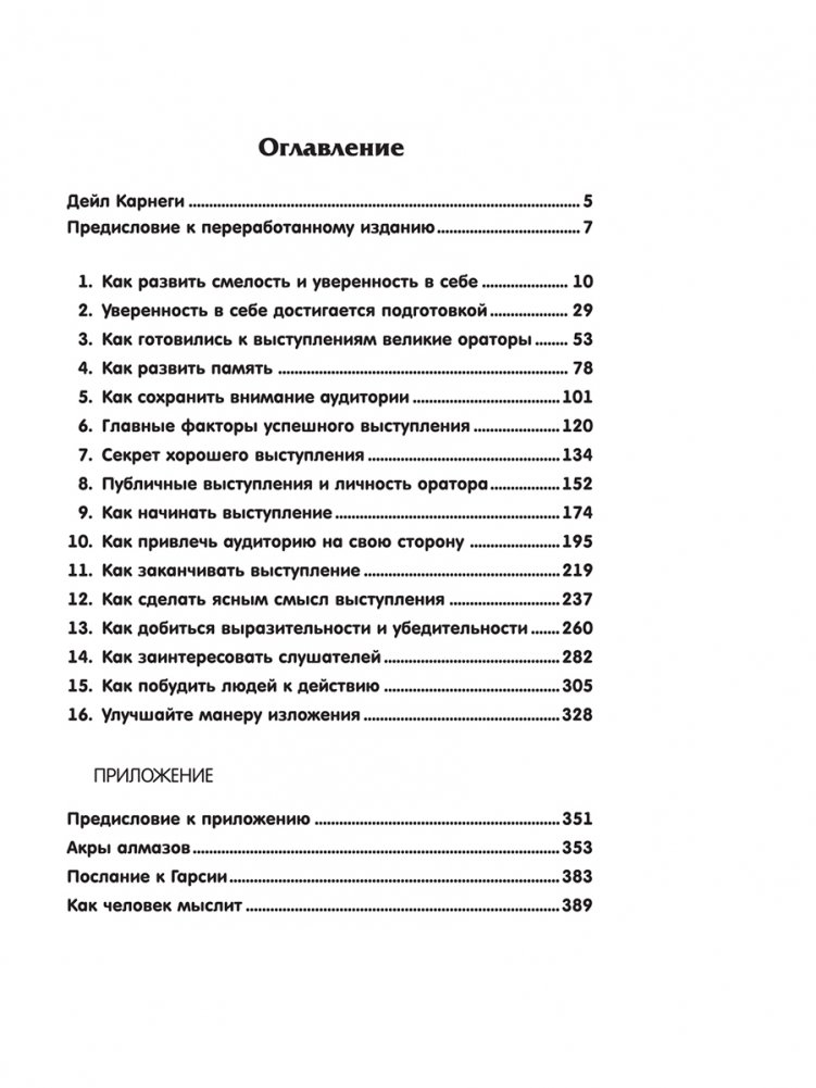 В книге также содержатся упражнения по улучшению дикции, правильности речи и десятки примеров из выдающихся выступлений знаменитых ораторов.