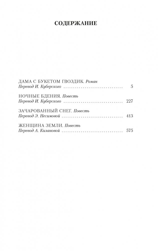 Помимо романа «Дама с букетом гвоздик», в сборник вошли три повести известного писателя — «Ночные бдения», «Зачарованный снег» и «Женщина земли».